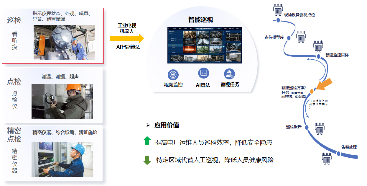 基于现有摄像监控系统(工业电视系统),利用边缘计算技术、人工智能识别技术,集中管控生产区域重点设备,对生产现场所有重点设备进行智能识别分析,智能化管控现场运行设备,有效减少安全事故发生。
