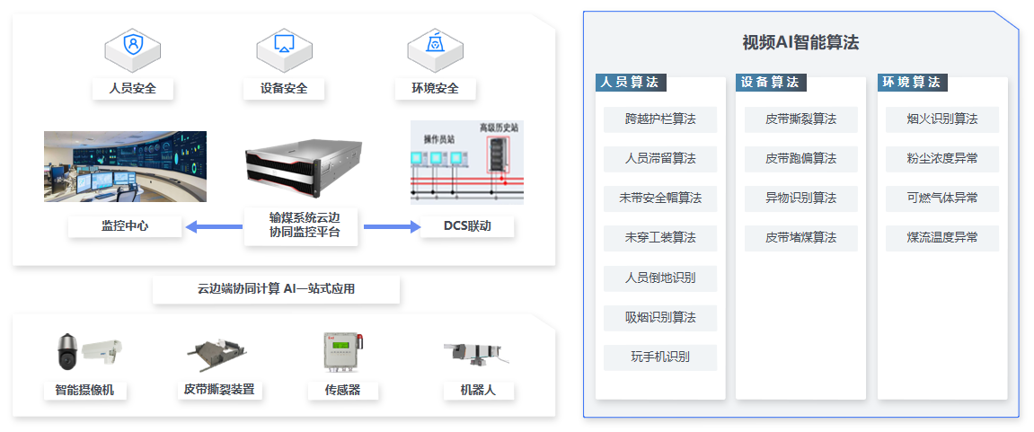 通过热成像、智能AI、物联网技术等,提供输煤皮带系统“少人值守、智能预警”方案。对人员、设备、环境形成整体监测。