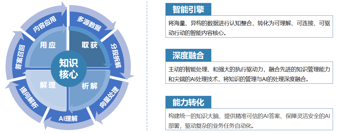 利用人工与自动化数据获取方式,充分发挥RIKE知识虹吸效应,聚合企业离散知识,利用先进AI技术吸收与转化知识储备,将智能AI与实际应用结合,为企业带来基于智能平台的知识中心,并基于RAG精准搜索服务降低AI幻觉,对外提供涵盖知识搜索、合规判定、智能客服、智能报告等服务。