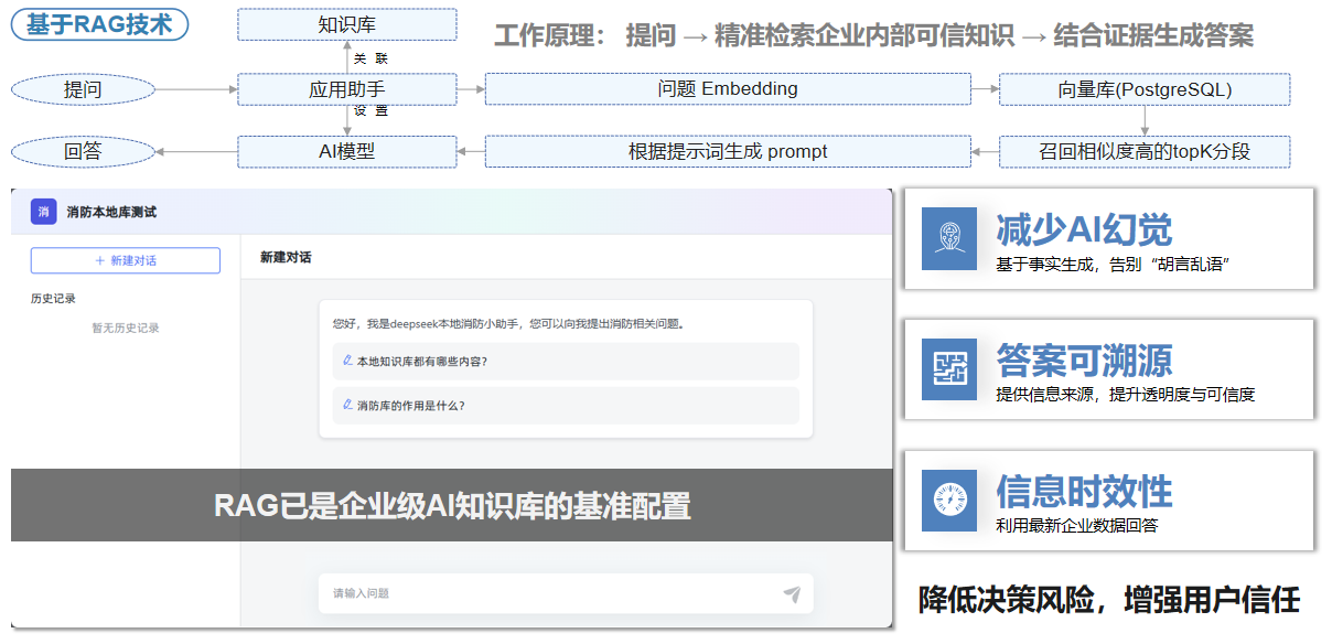 用自然语言提问,即获源自企业内部可信知识的答案。我们先进的RAG技术(检索增强生成),能精准定位信息源大幅减少AI“幻觉”,让您的AI值得信赖,这已成为企业级AI知识库的标配。