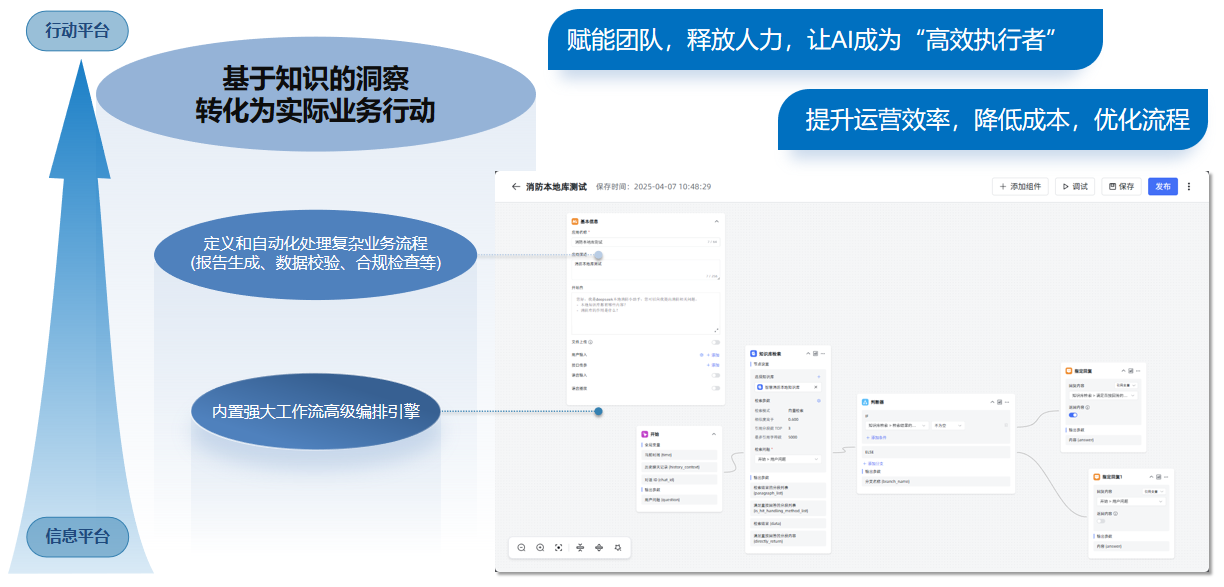 通过定义和执行智能工作流,企业可以将大量重复性、基于知识的任务自动化,例如自动生成各类报告、进行数据校验比对、执行合规检查等。